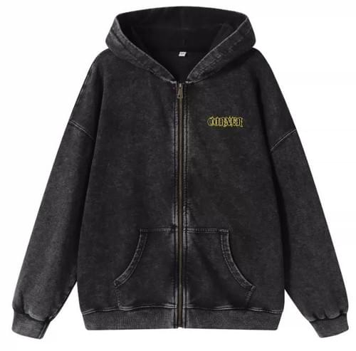 MAHJONG WASHED ZIP UP HOODIE BLACK